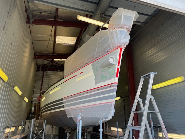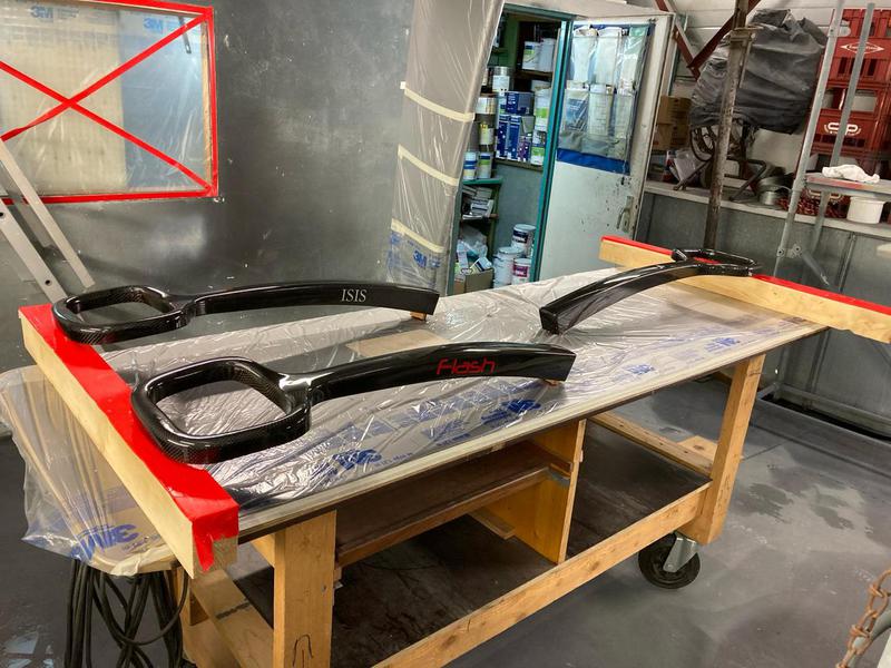 Nos dernières réalisations, peinture neuve Sprint98, d'un surprise, création Ttop pour Smartboat, barre carbone raquette de Grand surprise, changement de hublots, installation de bout dehors,